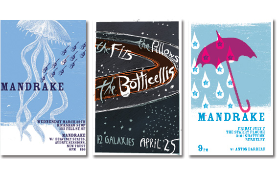 Screen printed posters for Mandrake, The Pillows The Fits and The Botticellis.
